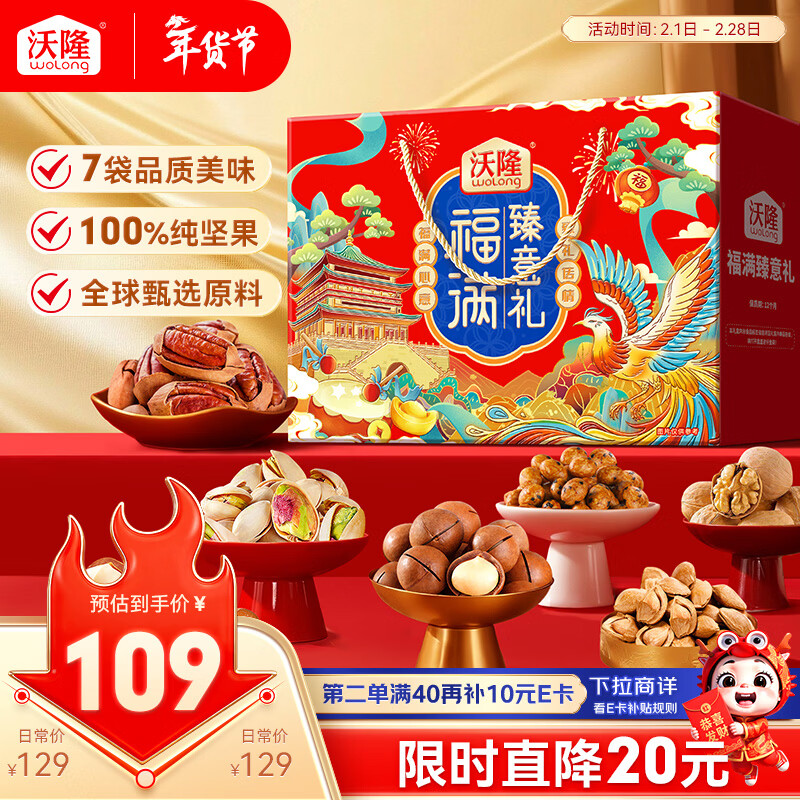 沃隆纯坚果礼盒14袋2400g金玉满堂高档年货礼盒零食干果炒货大礼包