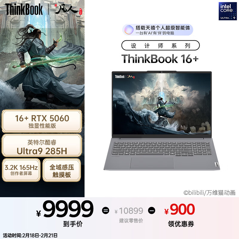 ThinkPad 联想笔记本电脑ThinkBook16+ AI轻薄独显性能版 英特尔酷睿Ultra9 16英寸 RTX5060 32G 3.2K