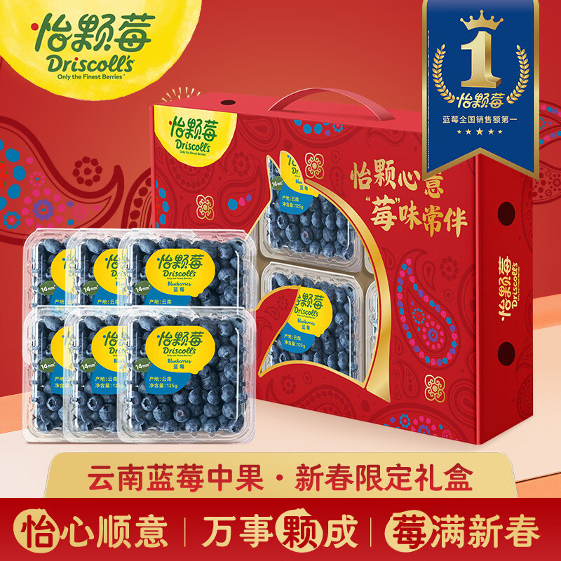 怡颗莓【颗颗饱满】当季云南蓝莓 国产蓝莓 新鲜水果送礼 云南当季125g*6盒(14-18mm)