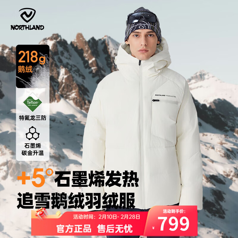 诺诗兰(NORTHLAND)秋冬户外男女羽绒服防寒保暖可升温三防高蓬鹅绒羽绒外套面包服 极地白色 4XL (190) 180-220斤 卡码拍小