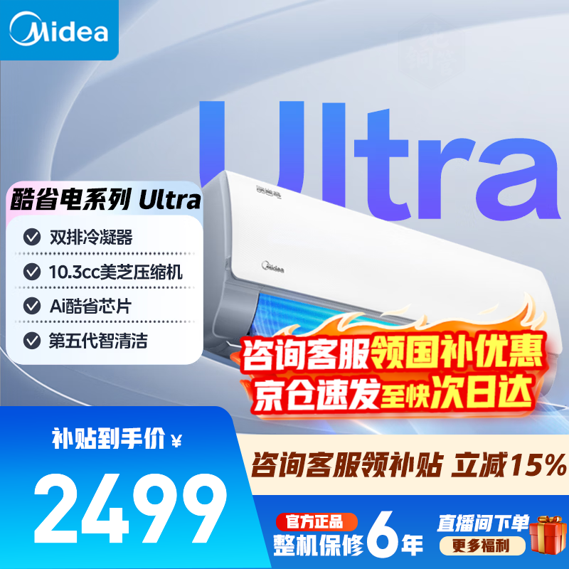 美的(Midea)空调挂机 酷省电 爆款推荐 新一级能效变频冷暖节能省电家用卧室壁挂式防直吹 以旧换新 国家补贴 酷省电Ultra 大1.5匹 双排冷凝
