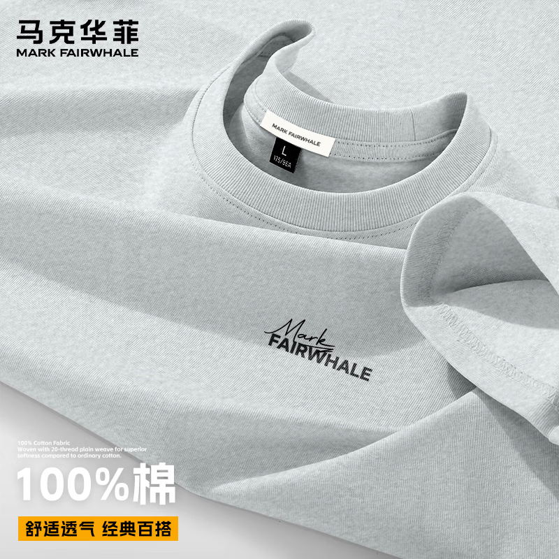 马克华菲(MARK FAIRWHALE)简约印花短袖T恤男情侣款夏季宽松柔软亲肤不闷汗基础款百搭上衣 【棉】-灰#JMK反差字 XL