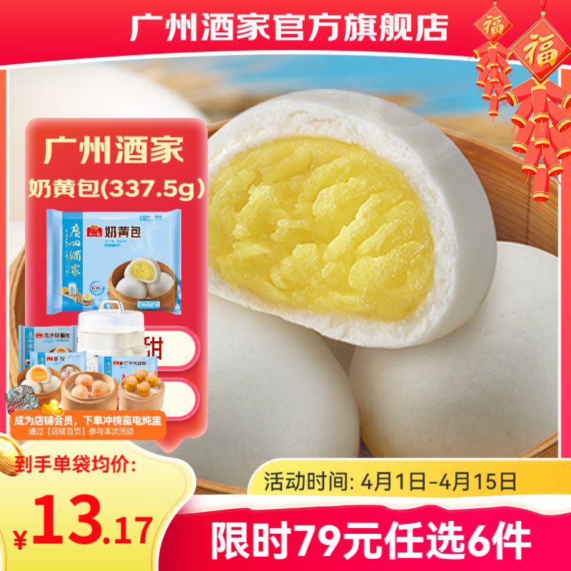 广州酒家早餐食品儿童面点 手抓饼包子馒头烧麦汤圆肠粉 半成品生鲜速食 奶黄包337.5g(9个装)