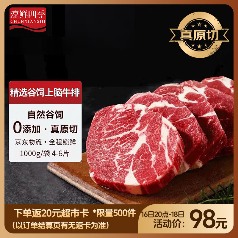 京东超市海外直采 原切谷饲安格斯250天上脑牛排750g PRIME 减脂雪花牛肉