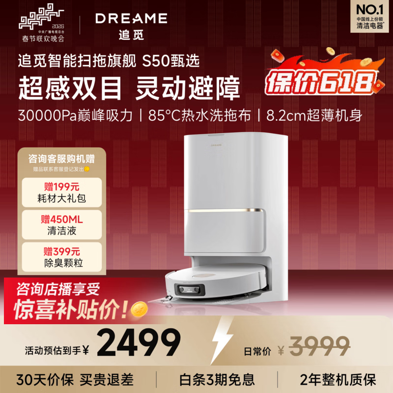 追觅S50甄选扫地机器人 扫拖一体自动清洗全自动上下水 扫地洗地机吸洗拖一体 S50甄选-水箱版