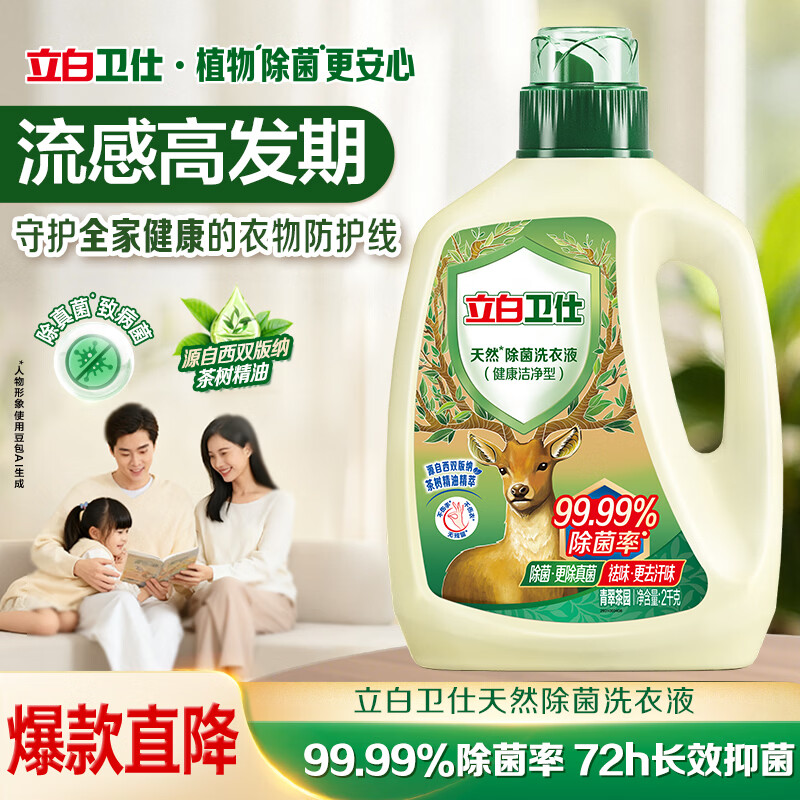 立白卫仕天然除菌洗衣液 青翠茶园 4斤单瓶 除菌率99.99%