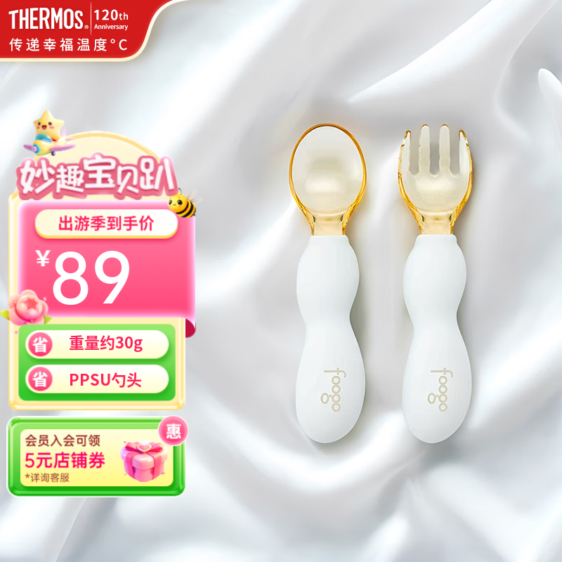 膳魔师儿童餐具叉勺316L不锈钢叉子勺子套装宝宝辅食工具带收纳盒 TCAH 嘟嘟绿-PPSU叉勺套组(含收纳盒)