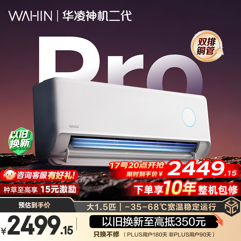 华凌空调 神机二代Pro 大1.5匹一级能效双排铜管省电舒适风变频挂机 以旧换新补贴KFR-35GW/N8HE1ⅡPro