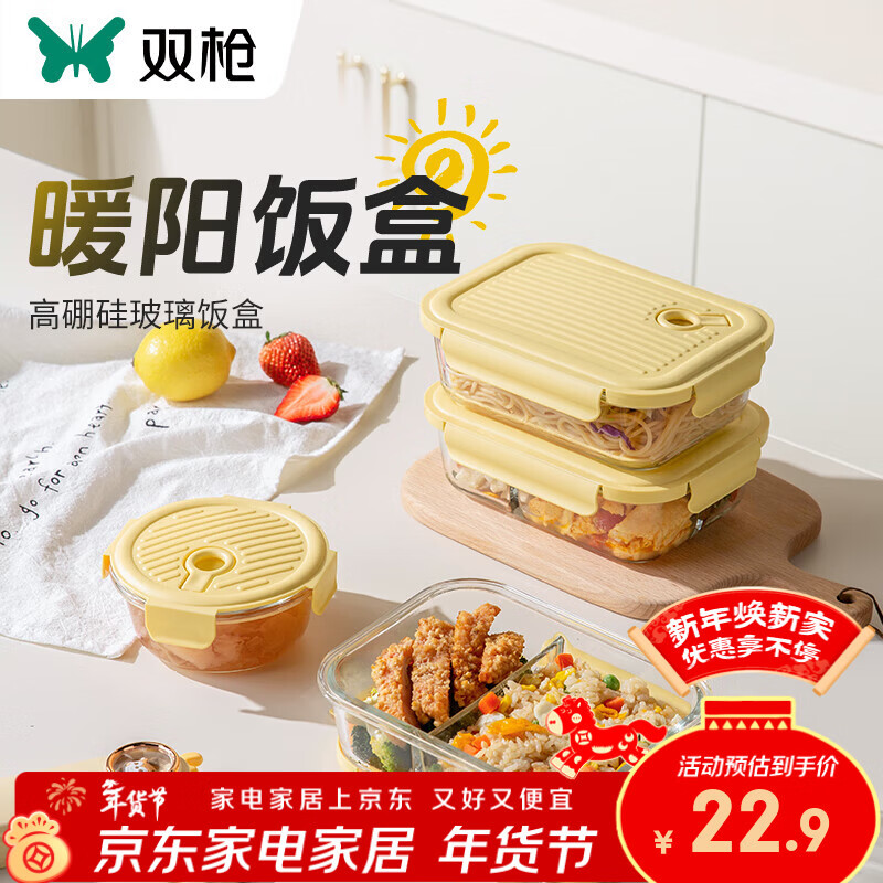 双枪玻璃饭盒微波炉加热专用碗上班族带饭餐盒保鲜便当盒分隔水 暖阳饭盒【单格】 1040ml