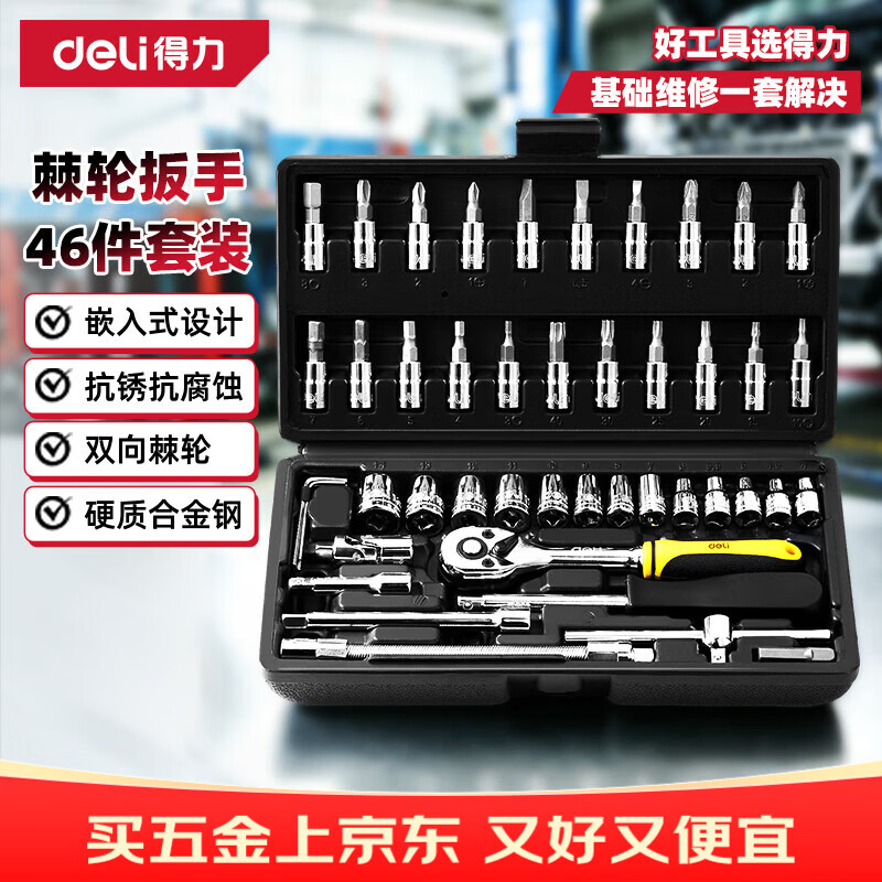 得力(deli)套筒扳手全套棘轮扳手套装46件套扭力扳手维修工具套装
