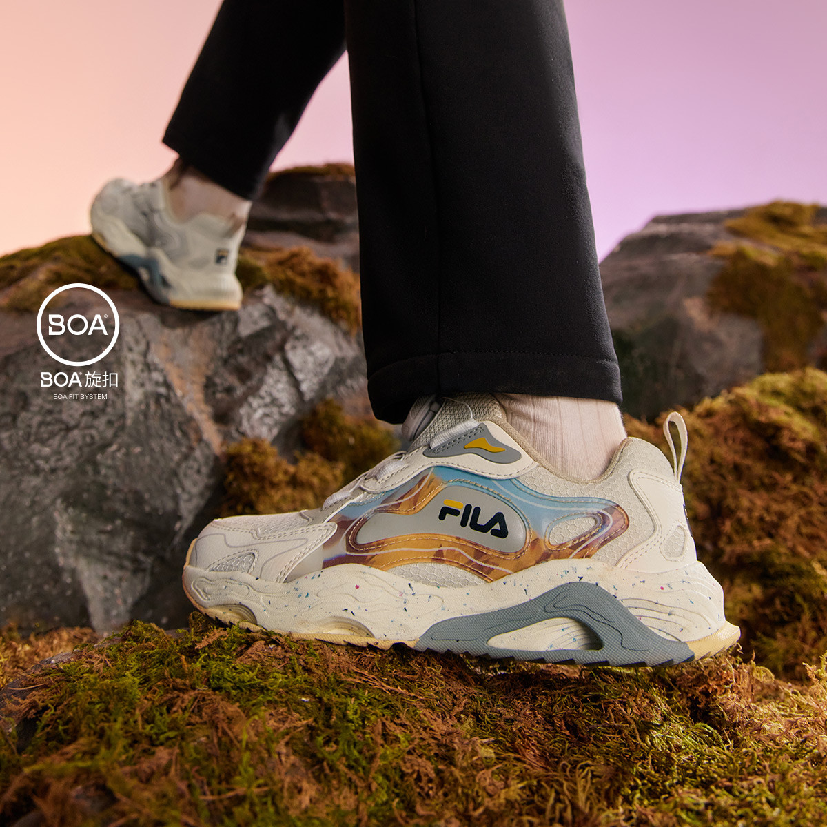 FILA 【溶洞 i3】男中大童(33-42)运动鞋男童轻便柔软户外鞋
