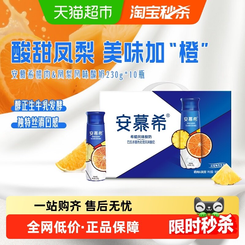 伊利安慕希高端畅饮橙+凤梨味酸奶230g*10瓶/整箱营养果肉
