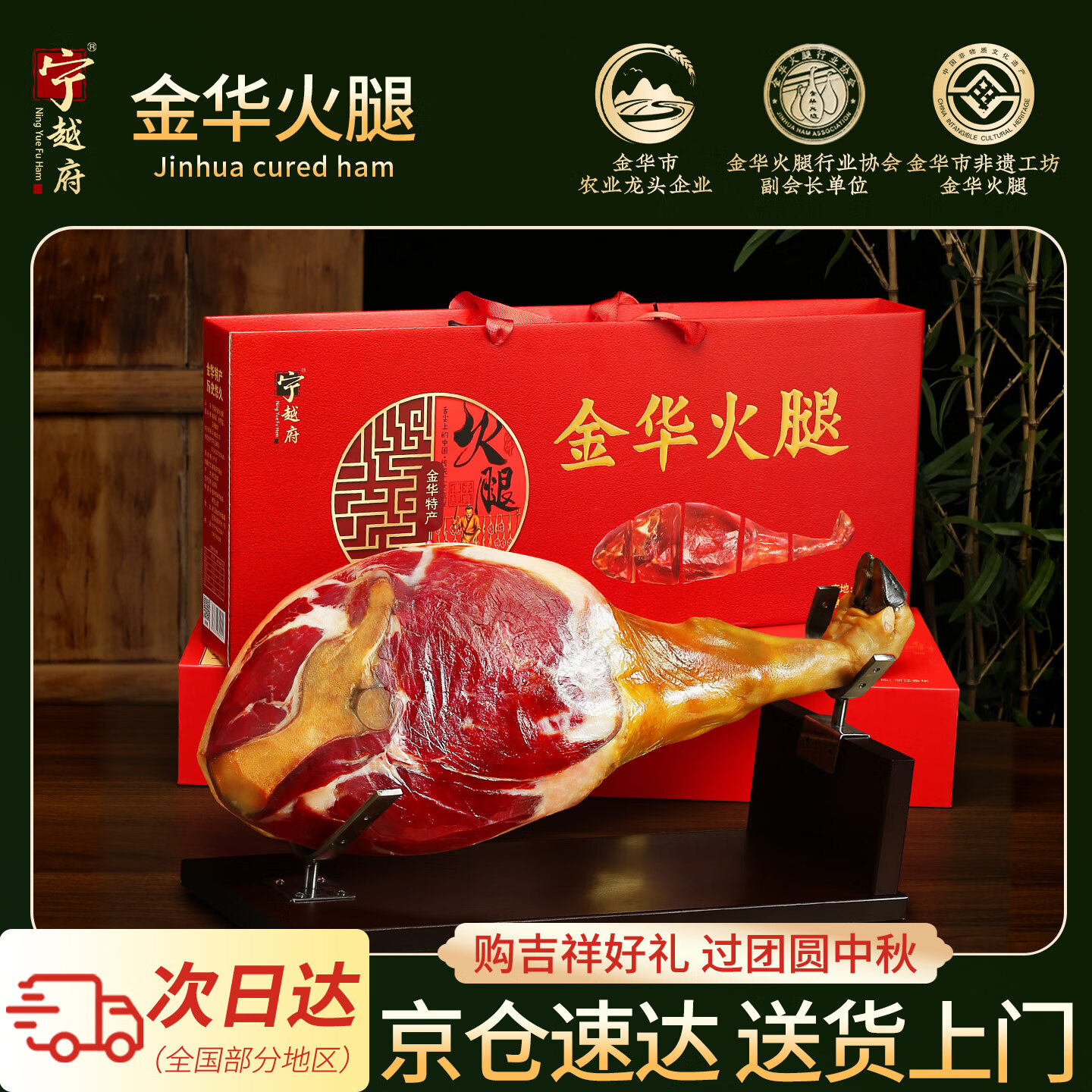 宁越府正宗金华火腿整腿分割4斤礼盒 浙江特产中秋节礼品送礼企业团购