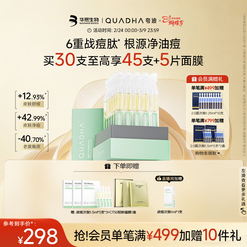 夸迪战痘次抛精华1ml*30支玻尿酸温和净痘护肤品华熙生物新年礼物女