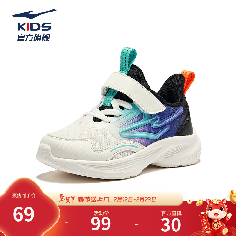 鸿星尔克儿童运动鞋男童女童跑步鞋休闲鞋 【轻影】微晶白/正黑3019 27