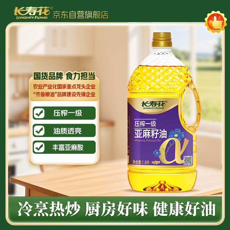 长寿花【保真亚麻籽油】压榨一级亚麻籽油1.8L