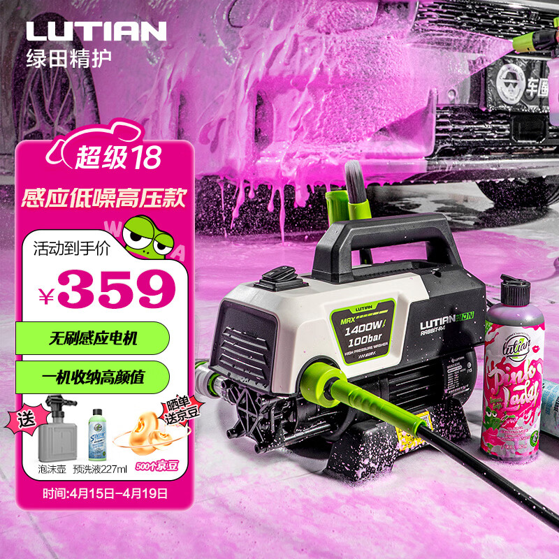 绿田(LUTIAN)高压洗车机御兔R4感应家用清洗机洗车水枪水泵无刷车洗车神器