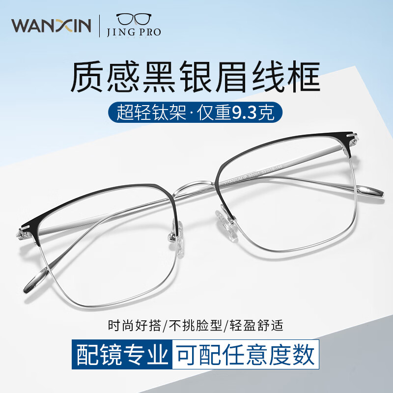 WAN XIN防蓝光眼镜框配近视镜片送男女时尚金属TK1 98001黑银 配万新1.60较薄非球面树脂镜片