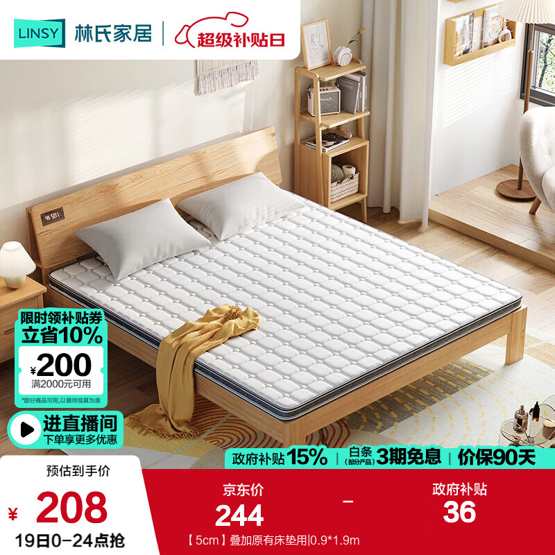 林氏家居天然椰棕床垫软海绵榻榻米单人租房地铺学生加硬棕护脊床垫CD137 【5cm】叠加原有床垫用|0.9*1.9m【快递速达】