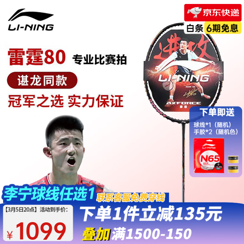 李宁(LI-NING) 雷霆100战戟8000全碳素进攻型羽毛球拍雷霆80【球星同款高端拍】 4U-雷霆80黑金单拍 (穿线请备注)