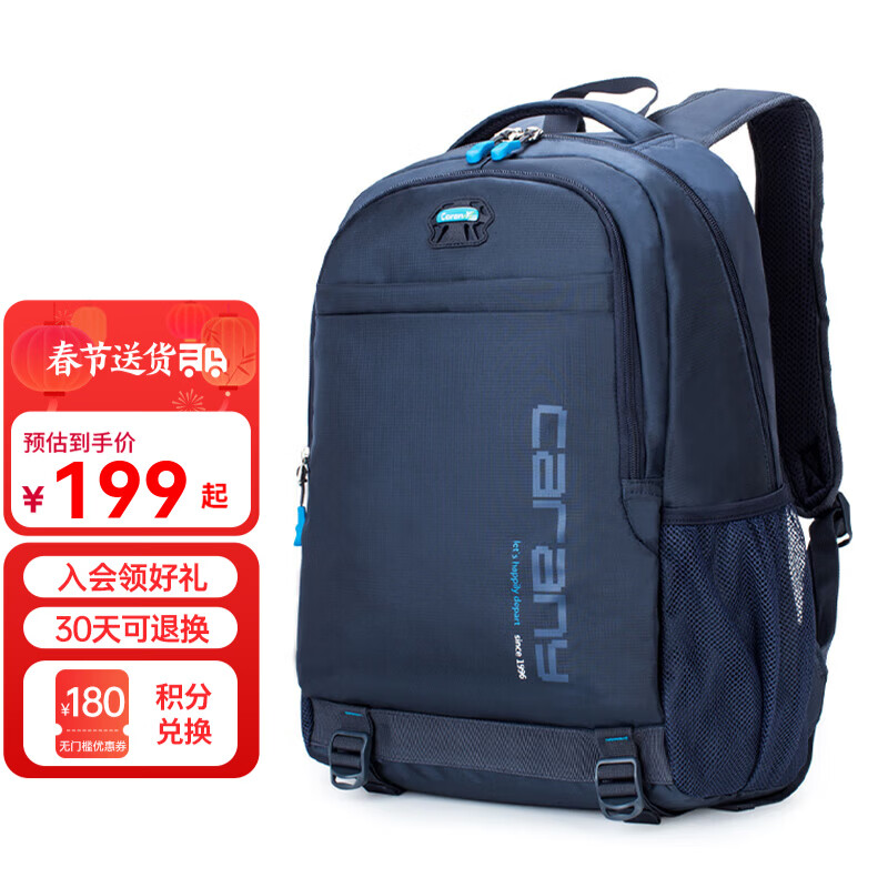 卡拉羊中学生书包轻便休闲双肩包韩版大容量初高中生旅行背包男女 藏青丨容量30L