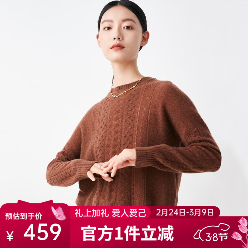 帕罗(PALUOPO)【100%山羊绒】秋冬镂空绞花设计淑女宽松气质针织羊绒衫女 摩卡色 M 100