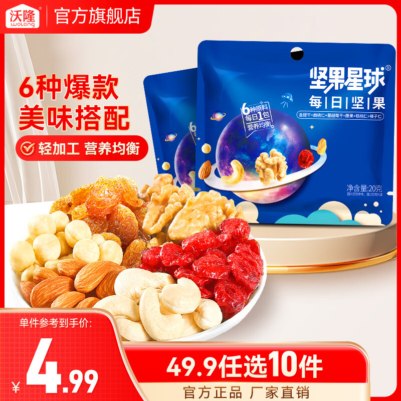 沃隆每日坚果果干组合装坚果炒货休闲食品营养健康零食蜜饯烘焙原料 【25gA 】74%坚果含量