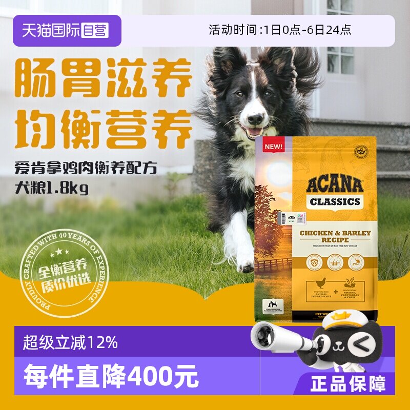 【自营】ACANA/爱肯拿狗粮鸡肉衡养犬粮1.8kg增肌【临期26-8】