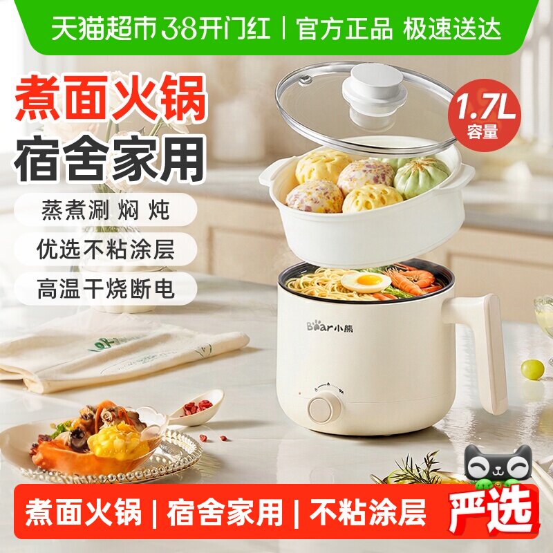 小熊电煮锅宿舍学生泡面锅家用多功能一体小型电锅一人食烹饪机