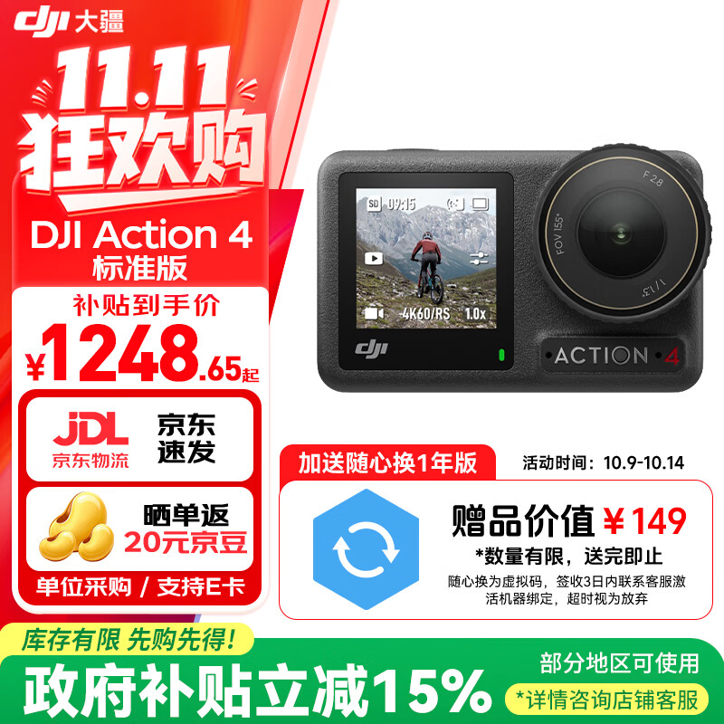 大疆(DJI)Action 6 运动相机 户外摩托骑行潜水徒步vlog便携式4K全能旗舰级摄像机可变光圈 Osmo Action 6 Action 6 标准套装【明日达专享】 标准版(不含随心换)