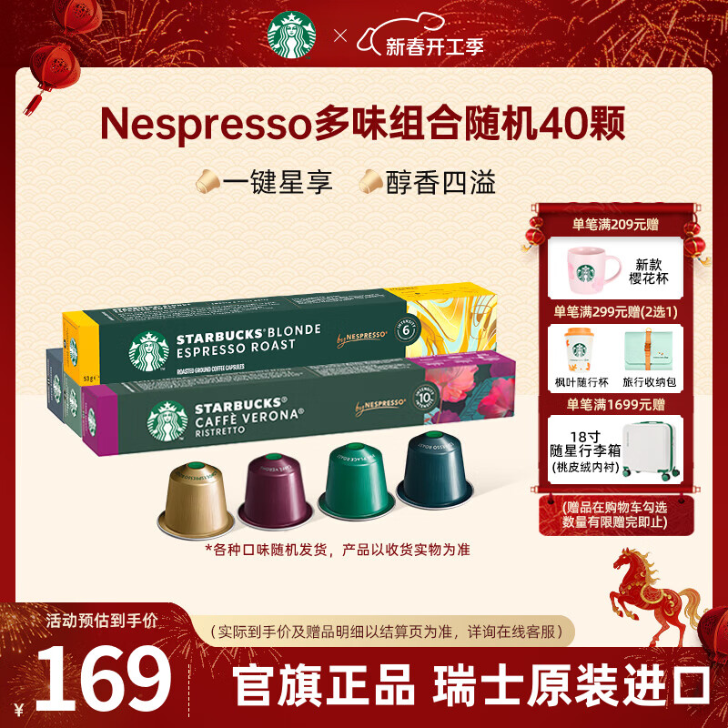 星巴克(Starbucks) 【进口咖啡】胶囊咖啡美式浓缩黑咖啡多口味适配Nespresso胶囊机 【老客优选220g】随机40颗 26年8月