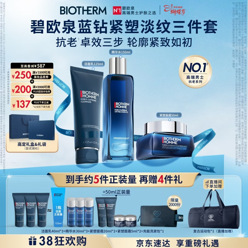 碧欧泉男士蓝钻净澈紧塑三件套(洗面奶+水+面霜)礼盒生日礼物送老公