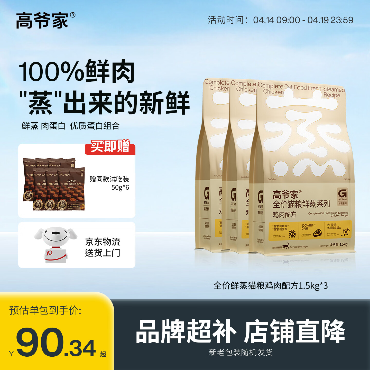 高爷家全价猫粮 鲜蒸鸡肉猫粮1.5kg*3