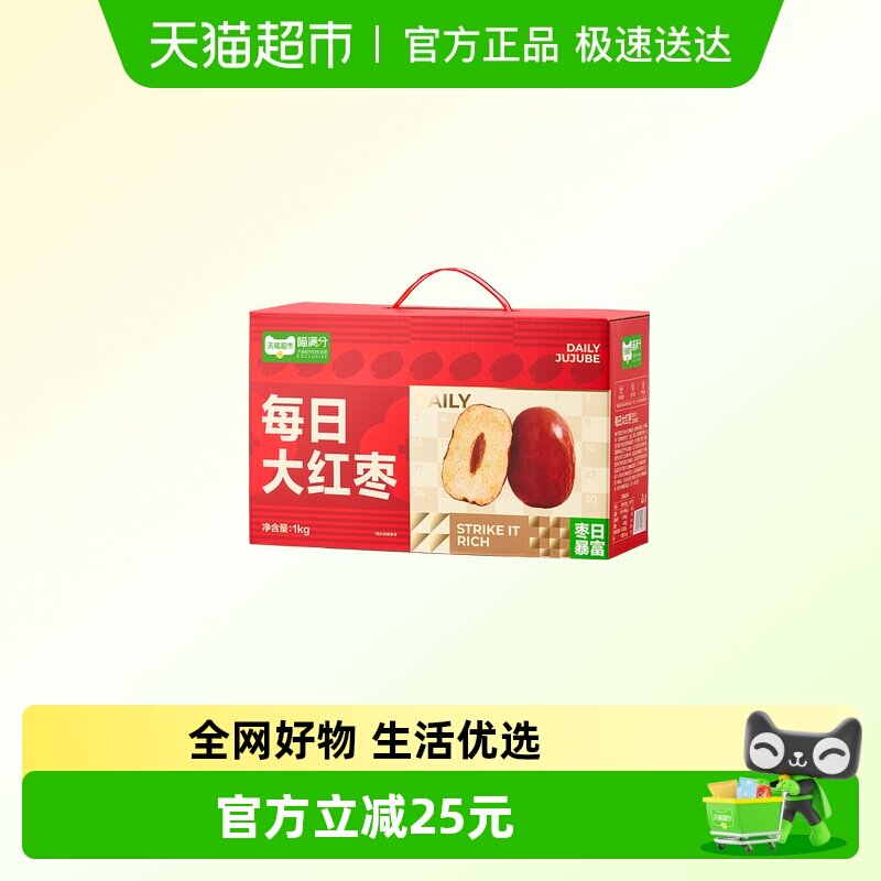 【零食广场】喵满分每日大红枣1000g骏枣即食休闲零食蜜饯果干2箱