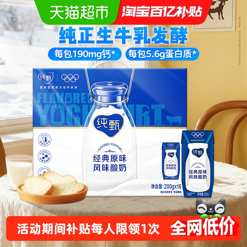 【百亿补贴】蒙牛纯甄原味风味酸奶200g*16盒浓郁美味 口口细腻