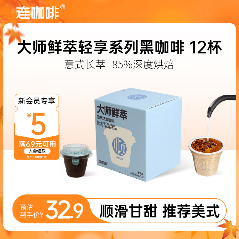 连咖啡 大师鲜萃系列金馥顺抱抱桶 速溶黑咖啡粉 意式浓缩拿铁美式 【12颗】顺滑甘甜(推荐美式)
