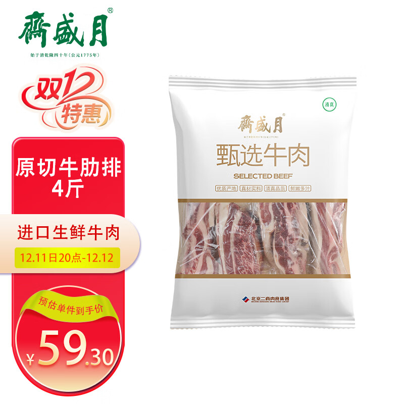 月盛斋 【PLUS补贴爆款】原切牛肋排4斤 进口生鲜牛肉 源头直发包邮