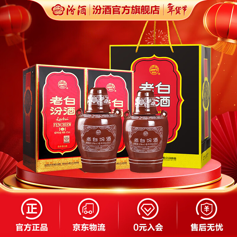 汾酒 老白汾10 清香型白酒 【新老包装随机发】 53度 475mL 2瓶 双瓶装(内含礼袋)