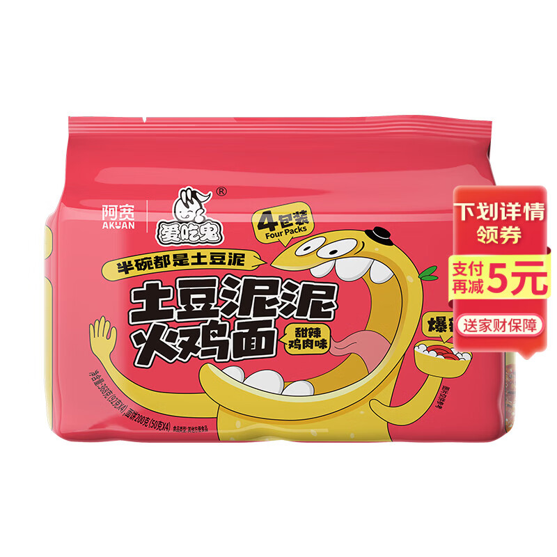 阿宽爱吃鬼土豆泥火鸡拌面4连包368g方便面速食干拌面免煮泡面