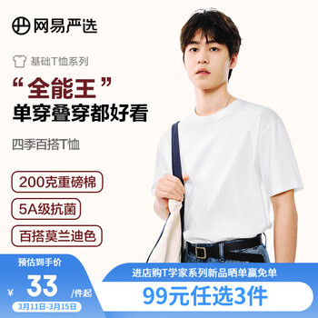 网易严选200g重磅纯棉T恤5A级抑菌不易变形耐水洗夏季短袖男女同款 本白色 L