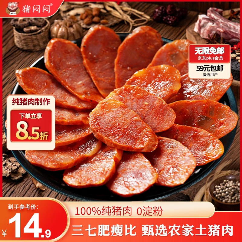猪闷闷四川腊肠川味麻辣香肠200g 纯猪肉7分瘦特产腊味