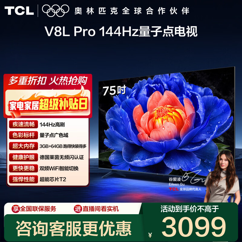 康佳E9HES 75英寸288Hz新款智能家用液晶电视机以旧换新补贴