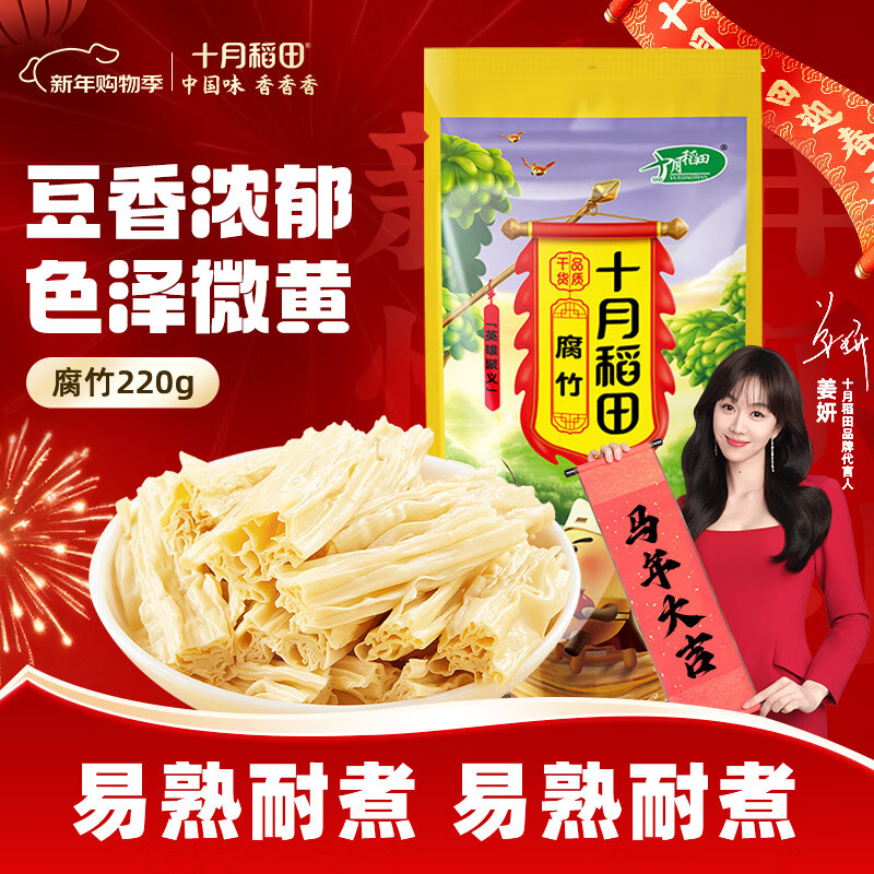 十月稻田 黄豆腐竹 220g*1袋 手工头层腐竹 凉拌火锅