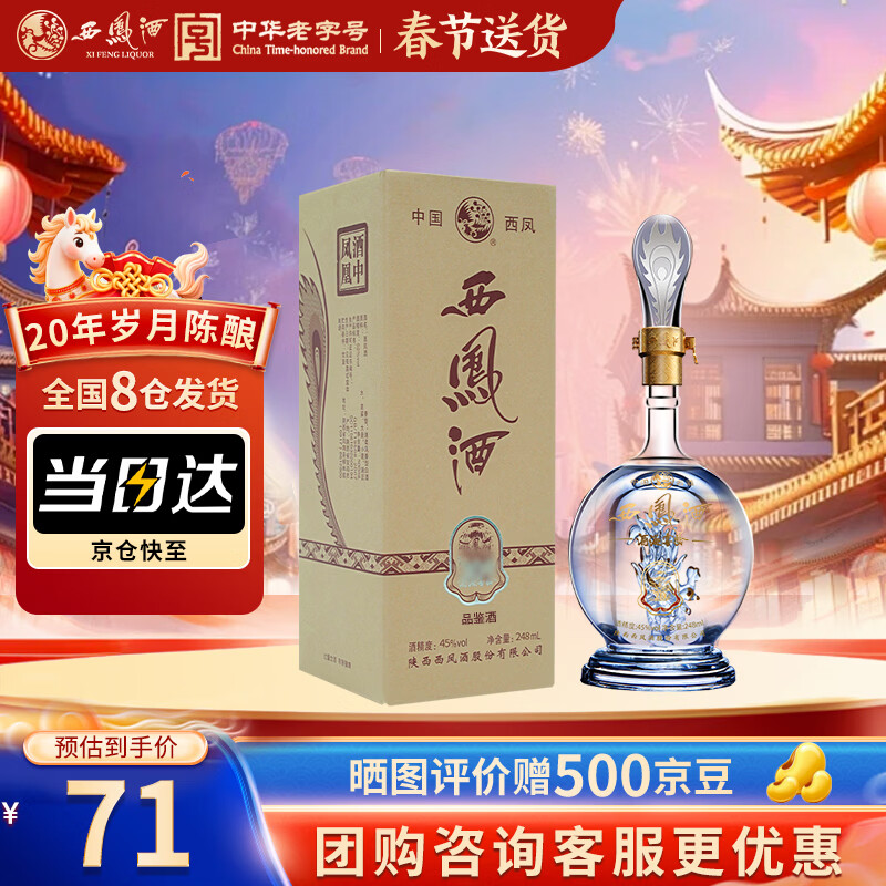西凤酒海窖龄 20年 45度248ml品鉴 凤香型白酒自饮年货送礼 单瓶装