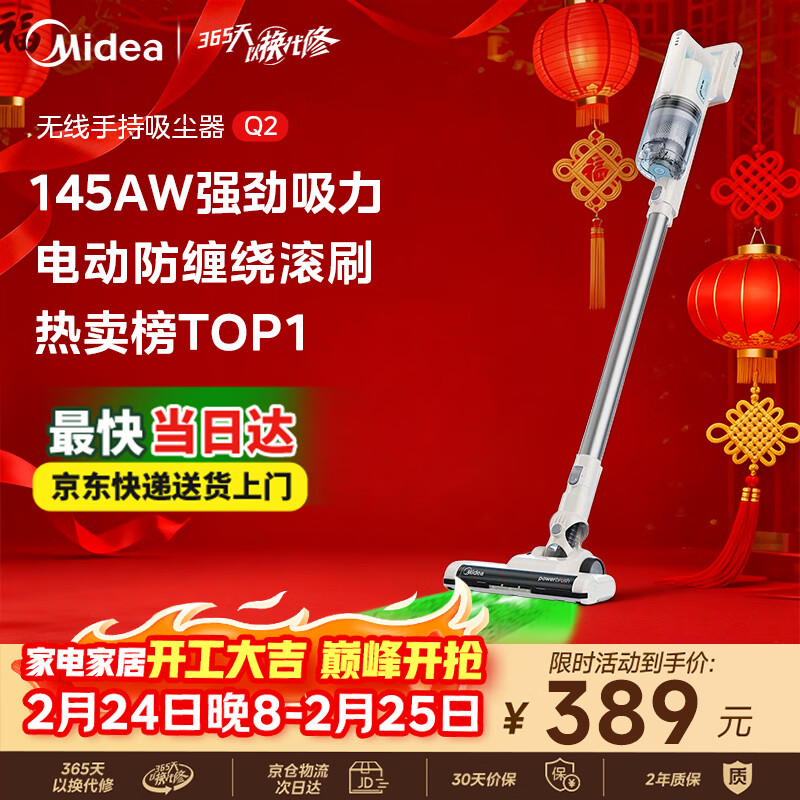 美的(Midea)无线吸尘器家用吸尘器家用宠物手持吸尘器大吸力轻量车载长续航地毯猫毛狗毛吸毛器【爆款升级】Q2