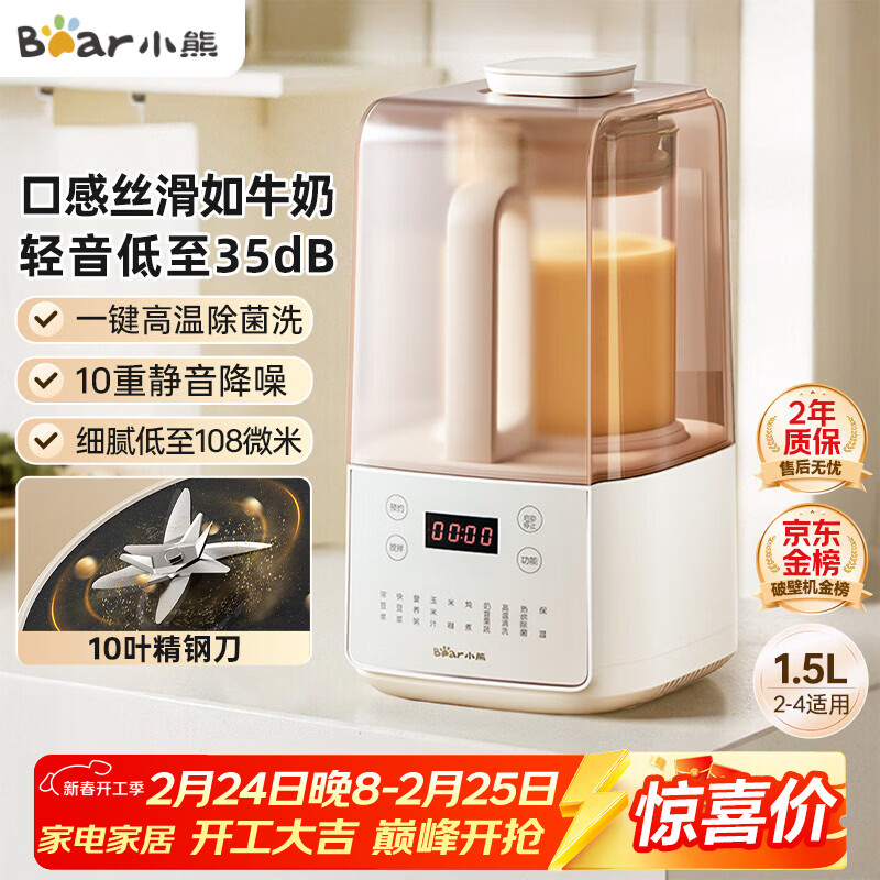 小熊(Bear)低音降噪破壁机1.5L家用全自动豆浆机榨汁料理辅食机预约多功能破壁免滤3-4人用F01G1【国家补贴】