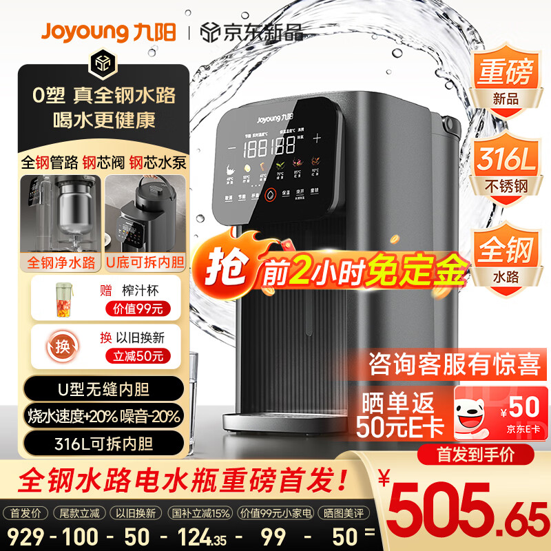 九阳(Joyoung)【新品】小钢瓶全钢水路电热水瓶电水瓶 烧水壶电热水壶 316L不锈钢U底内胆 恒温壶K50ED-WP980Pro