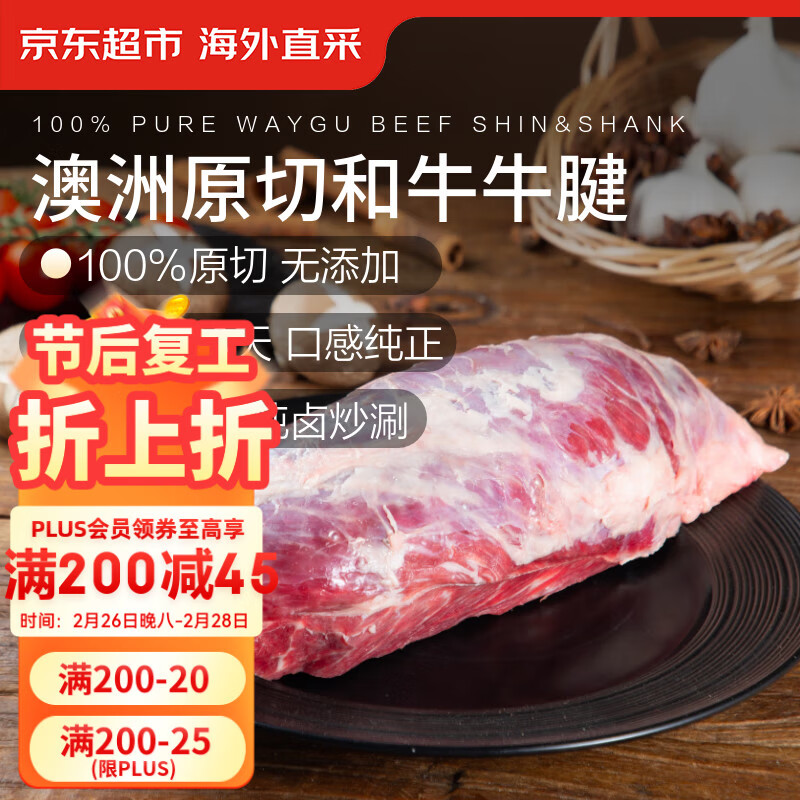 京东超市/京觅 进口原切澳洲和牛牛腱子 净重2斤 M8-9级 牛肉春节也送货