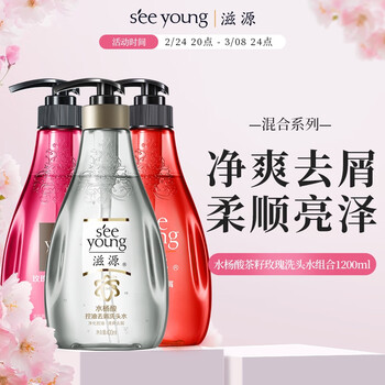 滋源(seeyoung)洗发水露无硅油清爽去屑修护柔顺香氛控油洗头膏 控油+去屑+柔顺 400ml*3瓶