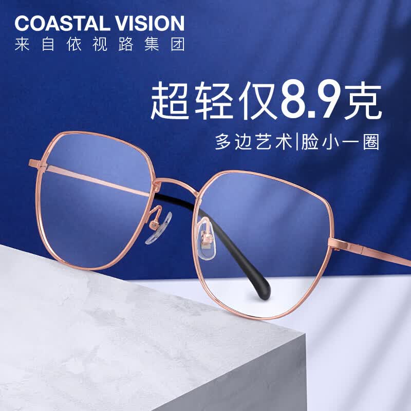 依视路(ESSILOR)钻晶非球面膜致超薄镜片防蓝光清透定制男女近视眼镜可配度数 钛+金属-全框-4023GD-金色 1.60折射率